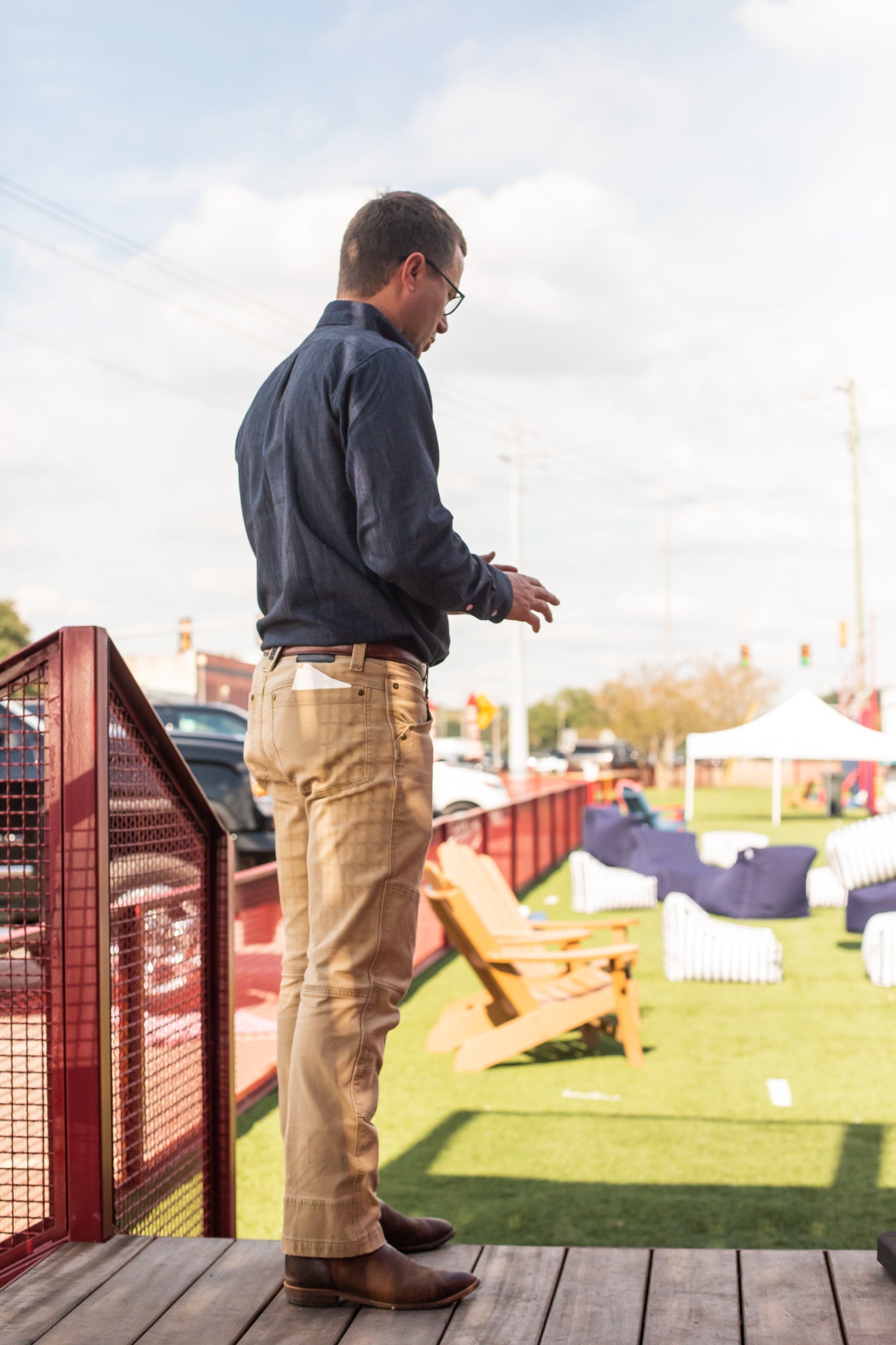 He continues,"What makes this so cool is that you can sit on the top and overlook the Amtrak Crescent line as it pulls into the station. You can overlook downtown Laurel at sunset and even watch a football game under the deck for a shaded, comfortable experience."